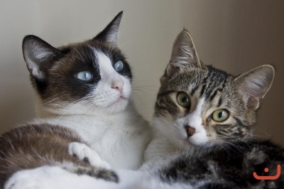 Mis gatas Mona (izq) y Lola (der) juntas en su cesto de mimbre.